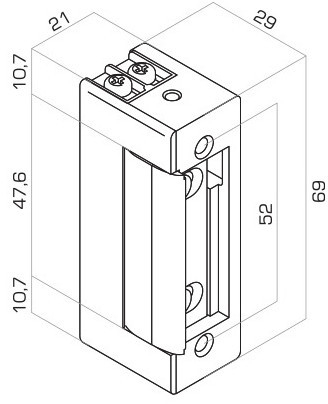 Данная электрозащёлка предназначена прежде всего для алюминиевых и нетяжелых стальных дверей.