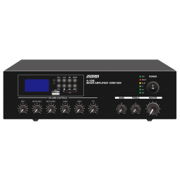Один канал, мощность на выходе составляет 120 Вт. Возможно подключение как трансляционных (напряжение в линии 70/100В), так и низкоомных (импеданс линии 4-16 Ом) акустических систем. Важно отметить, что одновременно можно применять акустику только одного типа. Диапазон рабочих частот 60 Гц - 15 кГц.