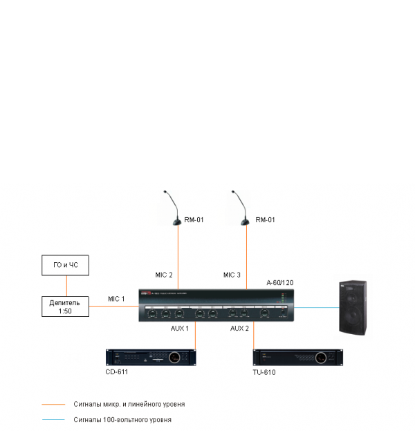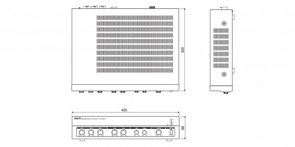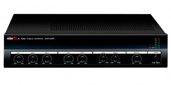 A-120 Усилитель (шнур 092) - трансляционный 1-зонный усилитель выходной мощностью 120 Вт предназначен для усиления звукового сигнала с целью его дальнейшей трансляции на громкоговорители 4 Ом или с питанием 30/70/100 В.