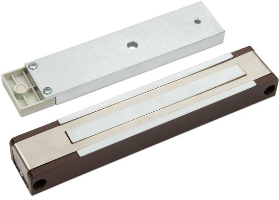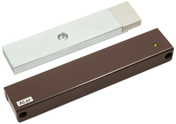 AL-400 Premium коричневый - электромагнитный коричневого цвета, степенью защиты (IP20), накладной (удерживающий, однодверный) замок с уголком (234х46,5х46,5) в комплекте или/и крепёжной планкой (М400 по заказу) , без отсека для установки контроллера, в корпусе из алюминиевого сплава, с усилием удержания 400 кгс, напряжением питания - 12 или 24В (указывается при заказе), током потребления - 0,53А, диапазоном рабочих температур от -20 до +40оС, с габаритными размерами - 225х42х26,5мм, массой комплекта - 2,95 кг предназначен для запирания открывающихся наружу металлических, деревянных и пластиковых дверей толщиной от 35 до 55мм.