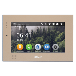 Видеодомофон индивидуальный Touch Screen 10 , c памятью (фото и видео) на SD карту (до 32GB), с возможностью подключения системы безопасности, видеоинтерком, фоторамка, проигрыватель видеофайлов, умный дом. Встроенный Web-браузер. Просмотр 16 IP камер. Питание + 12 В (БП в комплекте). Поддержка SIP P2P. Размер 286х190х24 мм. Цвет - золото.
