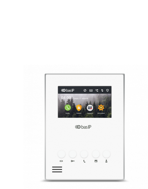 Видеодомофон индивидуальный, Touch Screen 4,3 , c памятью (фото и видео) на SD карту (до 32GB), с возможностью подключения системы безопасности, аудиоинтерком между домофонами. Просмотр 8 IP камер. Возможность подключения дополнительной трубки SP-AU. Питание PoE и + 12 В (БП в комплект не входит). Поддержка SIP P2P. Размер 135х185х25 мм. Цвет белый.