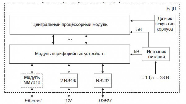 - Ethernet-адаптер (модуль интерфейсный NM 7010B, приобретается дополнительно) позволяет подключать БЦП к ПЭВМ через локальную сеть предприятия по протоколам UDP и TCP/IP.