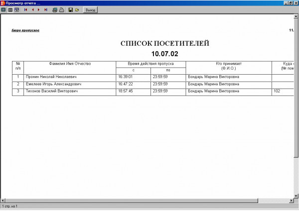 Бюро Пропусков Рубеж - программное обеспечение, которое предназначено для создания пропусков на посетителей Организации и передачи их данных в БЦП и в базу данных Рубеж Конфигуратор в качестве временных пользователей Системы Безопасности, а также формировать отчеты по посетителям и выводить их на печать.
