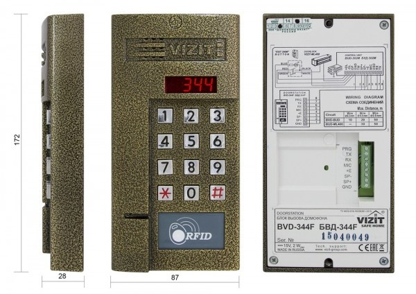 - блок вызова БВД-344F используется совместно с блоком управления БУД-302К-20, БУД-302К-80, БУД-302М как составная часть многоквартирного домофона VIZIT;