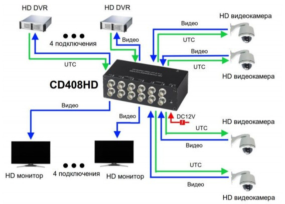 CD 408HD - распределитель видеосигнала HDCVI/HDTVI/AHD/CVBS.
