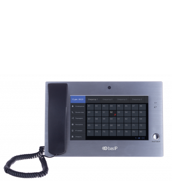 CM-01 Silver - настольный монитор с трубкой оператора системы "клиент - оператор" с встроенной камерой, многоабонентный с сенсорным экраном 9” TFT LCD и разрешением - 800х480, c внутренней памятью (фото и видео) на SDHC до 32 Гб, просмотром до 40 IP-камер, возможностью подключения 80 мониторов на 1 станцию.