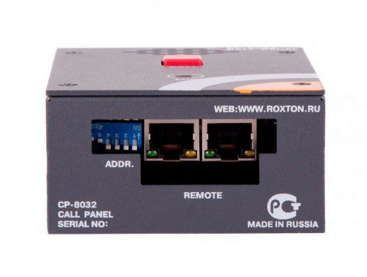 ROXTON CP-8032 - абонентская вызывная панель (каждой панели назначается свой адрес) настенного накладного исполнения, работающая по протоколу RS-485 в комплекте с селектором связи Roxton CS-8232, предназначена для осуществления экстренной связи с дежурным оператором.