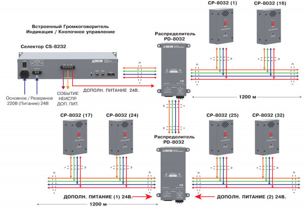 Всего к селектору может быть подключено до 32-х панелей.
