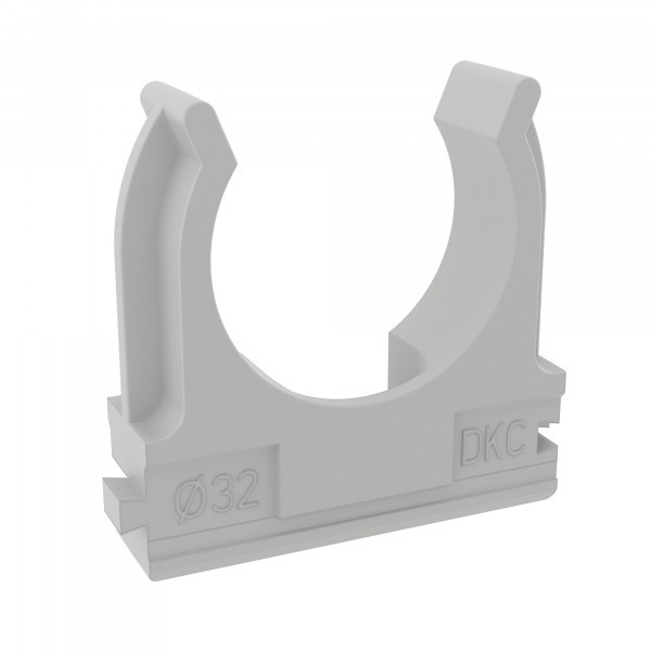 Держатель с защёлкой для труб d-32 (51032) DKC - держатель серого цвета из ABS пластика + полипропилена с крепёжным отверстием, защёлкой и посадочным диаметром 32 мм. (100шт./уп.) для жёсткой фиксации гофрированной или жесткой гладкой трубы к поверхности стен, потолков, полов или перегородок.