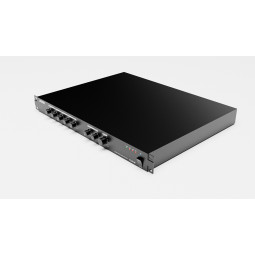 Прибор надёжно защищён от перегрева (активное + пассивное охлаждение), короткого замыкания, а также перегрузки сигнала на выходе. Монтаж настольный или в стойку. Питание от сети AC 220В. Габариты 485х44х280 мм, масса 9 кг.