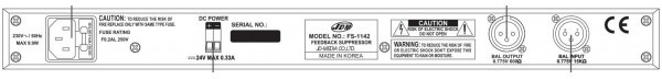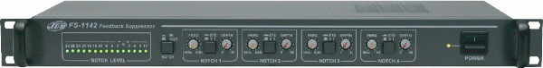 FS-1142 - блок подавления обратной акустической связи с 4-мя перестраиваемыми узкополосными фильтрами для установки в 19" стойку имеет минимальный собственный шум электропитания.