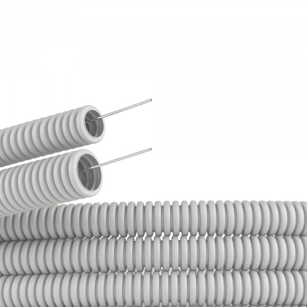 Гофрошланг d-40 (91940) DKC - труба гофрированная серого цвета лёгкого типа с зондом гибкая диаметр 40 мм. (100м./уп.) - профессиональная кабеленесущая система для скрытой/открытой электропроводки в стенах (по стенам), потолках (по потолкам), полах жилых, административных и промышленных помещений в соответствии с требованиями ПУЭ.