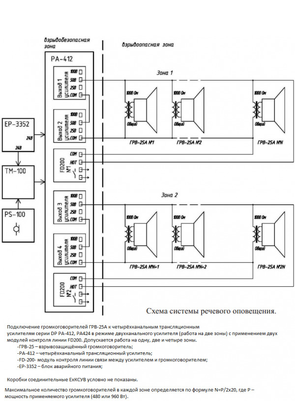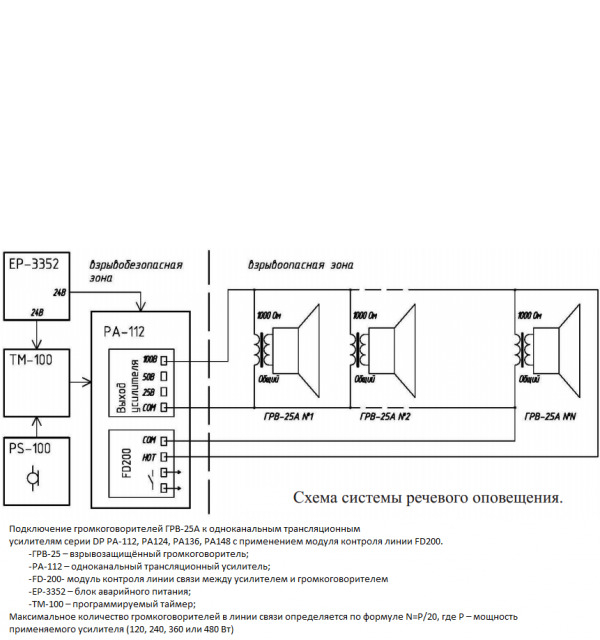 ГРВ-25А-К - оповещатель рупорный пожарный взрывозащищенный (1ExdbIIBТ6GbX), речевой мощностью - 25 Вт, степенью защиты (IP54), с 2-мя кабельными вводами для открытой прокладки кабеля диаметром (8 - 14 мм) и уплотнительными резиновыми (ИРП-1347) кольцами (всё в комплектации) предназначен для воспроизведения речевых сообщений и фоновой музыки в системах оповещения и трансляциии и применяется на предприятиях химической, нефтегазодобывающей, нефтегазоперерабатывающей отраслей и взрывоопасных зонах (1 и ниже классов) других производств.