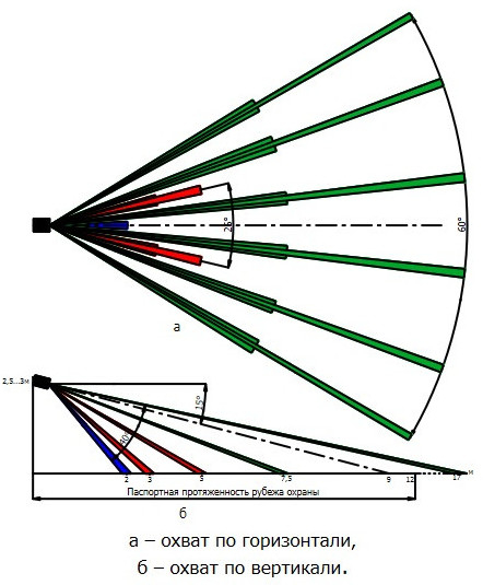- веерная зона обнаружения;