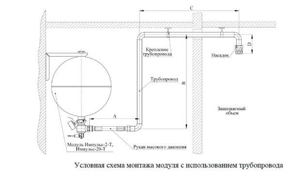 Данный модуль рекомендуется для тушения очагов пожара стационарных объектов: электрощитов и электрошкафов, складских и архивных помещений, аппаратных станций АТС и ЭВМ, библиотек, музеев. картинных галерей и т. п., а также пространство за подвесным потолком и полом этих объектов.
