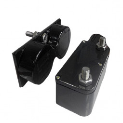 ИО 102-53 исп.40 - извещатель накладной охранный точечный магнитоконтактный с контактами типа (НО), в корпусе из пластика и чёрного цвета, с контактными болтами охранного шлейфа и тамперными клеммами для подключения через 1-ин кабельный ввод кабеля диаметром (6,5 - 12мм) и сечением жил (не более 0,75мм2) предназначен для блокировки гаражных ворот, ангаров, железнодорожных контейнеров, телефонных шкафов и других конструктивных магнитопроводящих (металлических) и магнитонепроводящих (алюминиевых, деревянных и т.д.) элементов зданий и сооружений на открывание и смещение с выдачей в шлейф приёмно-контрольного прибора извещения о тревоге путем размыкания контактов геркона.