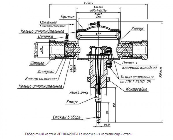 Крепление извещателя может осуществляется через метрическую резьбу на корпусе (для резервуаров): М30х1,5.