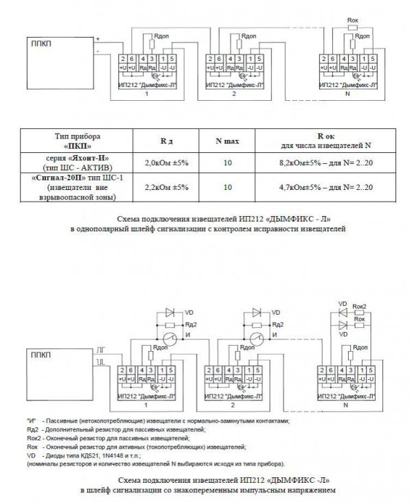 Извещатель включается в шлейф сигнализации с соблюдением полярности и без дополнительного диода в случае знакопеременного напряжения в шлейфе.