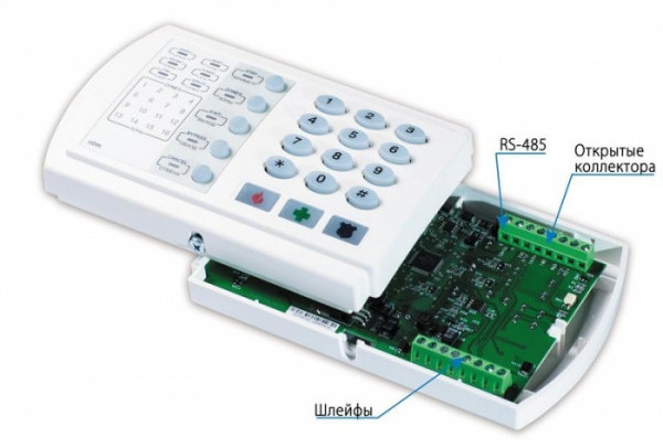 Контрольная панель с передачей по RS-485 и подключением проводных датчиков