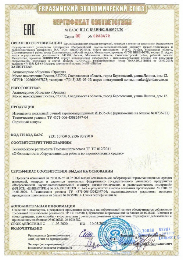 Приборы приемно-контрольные и пульты управления взрывозащищенные