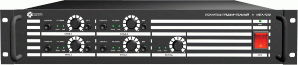 МЕТА 9210 - усилитель для предварительного усиления, микширования и обработки звукового сигнала в системах аварийного, диспетчерского оповещения и в системах местного (объектового) вещания.