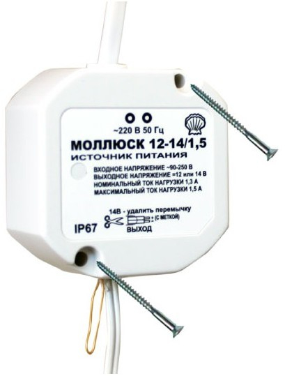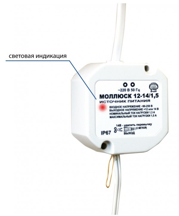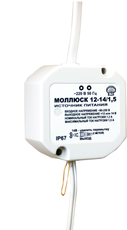 Моллюск-12-14/1,5 - источник питания предназначен для питания радиоэлектронных устройств широкого применения напряжением 12 или 14 В постоянного тока от сети переменного тока напряжением 220 В.