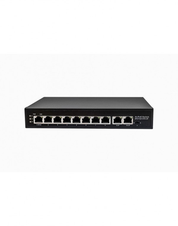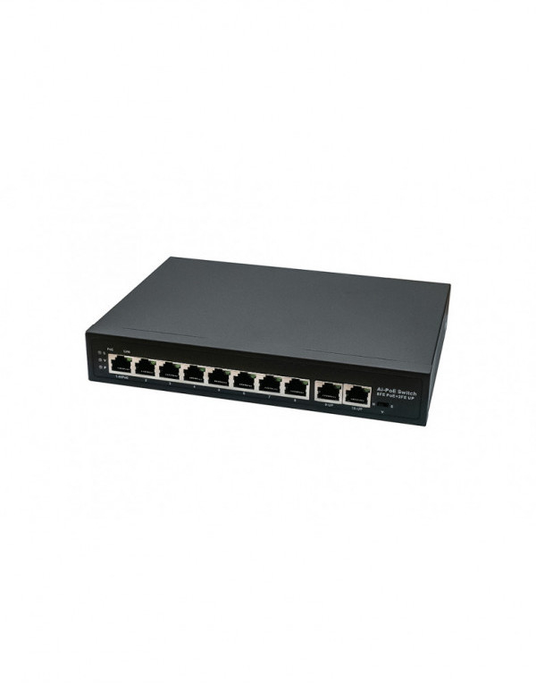 PoE коммутатор Fast Ethernet на 10 RJ45 портов. Порты: 8 x FE (10/100 Base-T) с поддержкой PoE (IEEE 802.3af/at), 2 x FE (10/100 Base-T). Соответствует стандартам PoE IEEE 802.3af/at. Автоматическое определение и режим антизависания PoE устройств. Мощность PoE на порт - до 30W. Суммарная мощность PoE - до 120W. Поддержка режима CCTV: Увеличение расстояния передачи данных и питания до 250м, изоляция портов (VLAN). Встроенная грозозащита 6кВ. Питание: AC100-240V (123W). Размеры (ШxВxГ): 210x35x150мм. Рабочая температура: -10...+55 гр. С