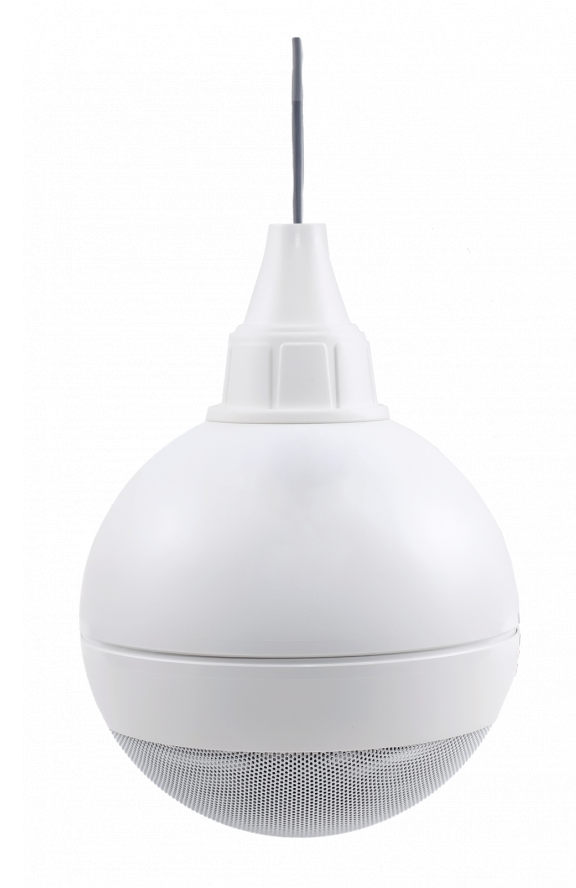 Подвесной сферический громкоговоритель ( люстра ).Мощность 10 / 6 / 3 Вт /100В.Чувствительность 91 +/-3дБ.Частотный диапазон 180-15 000Гц.АБС пластик.Габариты 280х715мм.