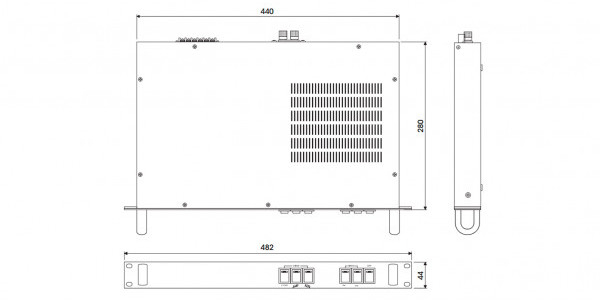 Конструкция блока предусматривает его установку в стандартный 19'' аппаратный шкаф.