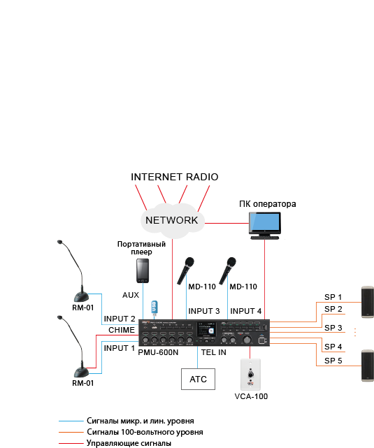 Первый микрофонный вход и вход для подключения АТС являются приоритетными.