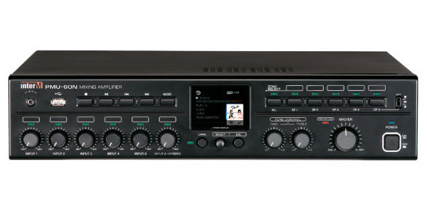 PMU-60N - цифровой мультимедийный 5-зонный микшер - усилитель выходной мощностью 60 Вт, со встроенным цифровым мультимедийным проигрывателем MP3/WMA/WAV предназначен для усиления звукового сигнала с целью его дальнейшей трансляции на громкоговорители 4 Ом или с питанием 100 В.