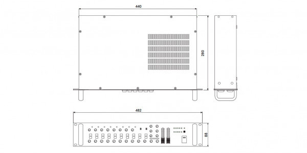 Для этого предусмотрены 8 микрофонных входа (XLR), 7 аудио (Jack 6,3 мм), 4 стерео (RCA, Jack 6,3 мм), 2 приоритетных линейных входа (Jack 6,3 мм).