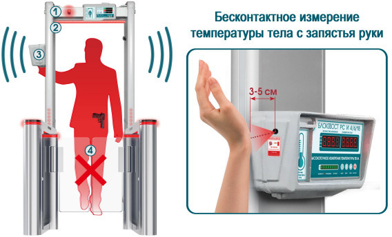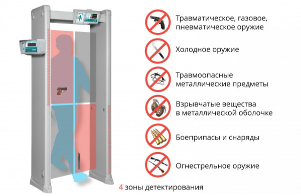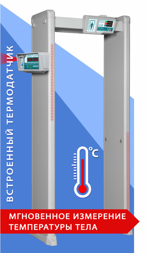 PC И 4 - стационарный арочный металлодетектор для выявления запрещенных к проносу любых металлических изделий, а также измерением температуры тела человека (встроенный в блок управления термодатчик - высокоточный пирометр) в диапазоне (от 0 до +400С) и точностью измерения (± 0,20С) имеет от 2-х до 4-х взаимно перекрывающихся зон и предназначен для использования в государственных, учебных, медицинских учреждениях, производствах, бизнес-центрах и в других местах, требующих обеспечения нормальной эпидемиологической обстановки и безопасности людей.