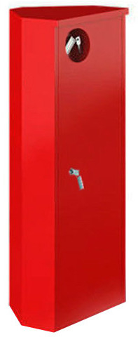 ШПО-106УЗК - шкаф пожарный угловой для размещения 1-го переносного порошкового (от ОП-1 до ОП-9 ЯрПож), воздушно-пенного (ОВП-4, ОВП-8) или углекислотного (от ОУ-1 до ОУ-3) огнетушителя массой - не более 12 кг, габаритными размерами ( не более 300х240х700 мм), с навесным типом установки, закрытый (без стеклянного смотрового окна на дверце), из стали, окрашенной порошковым методом в красный цвет, наличием почтового замка и кармана для хранения ключей.