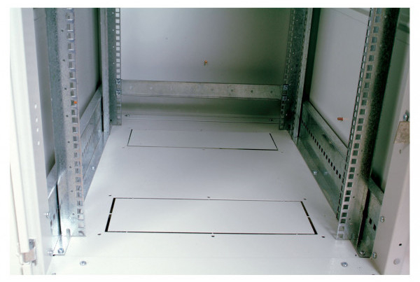 - Шкаф имеет 4 оцинкованные вертикальные направляющие, регулируемые по глубине.