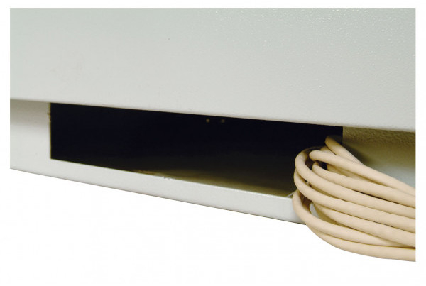 - В основание шкафа установлены винтовые опоры (ножки), позволяющие компенсировать неровности пола. Возможна установка поворотных роликов различной нагрузочной способности (в комплект поставки не входят).