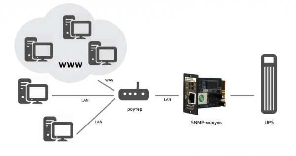Мониторинг и управление ИБП в компьютерной сети, с обеспечением автоматического корректного завершения работы серверов и рабочих станций.