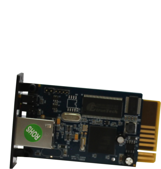 SNMP-модуль для SKAT UPS 1000 RACK и SKAT UPS 3000 RACK. Мониторинг и управление ИБП в компьютерной сети, с обеспечением автоматического корректного завершения работы серверов и рабочих станций. Автоопределение 10M/100M Fast Ethernet. Управление и конфигурация через Telnet, Web-браузер или NMS. Поддержка протоколов TCP/IP, UDP, SNMP, Telnet, SNTP, PPP, HTTP,SMTP.