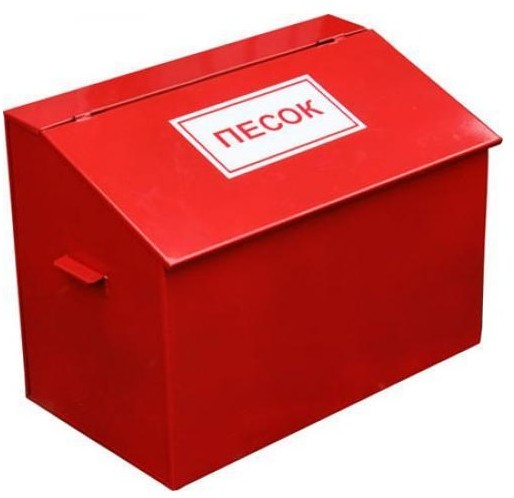 Ящик для песка 0,3м3 - металлический ящик объёмом - 0,3 м3, красного цвета для хранения строительного песка, предназначенного для засыпки очагов возгорания и разлива нефтепродуктов и иных легковоспламеняющихся веществ.