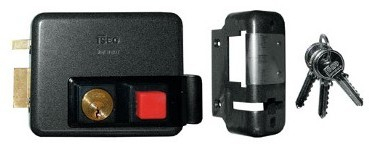 Накладной, ключ+кн., отк. дв. внутрь, правый, цилиндр + три ключа, кнопка выхода, блокируемая ключом в положении открыто , закрыто , 106х130х40 мм, 12 В/1,25 A