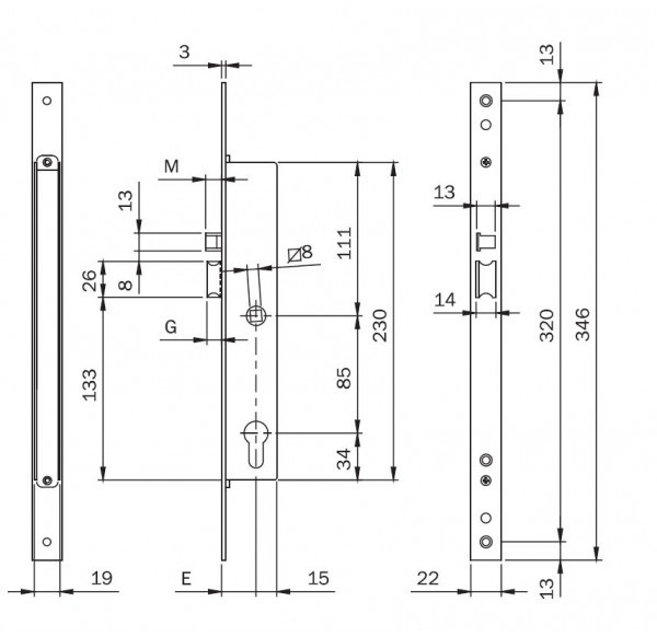 Ответная планка, цилиндр стандартного профиля и оковка ключевины поставляются отдельно.