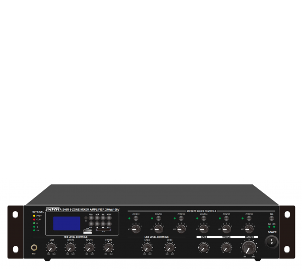 Зональный микшер-усилитель с медиаплеером A-240R является отличным решением от бренда RORSYS при организации на объектах разветвлённой системы фонового/сопроводительного музыкального вещания и/или голосового оповещения. Поддерживает 6 зон вещания. Выходная мощность 240 Вт. Благодаря встроенному плееру может воспроизводить звук без сторонних источников. Модули Bluetooth, FM-тюнера и порты USB/SD-card покрывают все возникающие потребности в источниках музыки. Усилитель прекрасно подойдёт для ресторанов, лобби отелей, ТРЦ, магазинов, АЗС и т.п.
