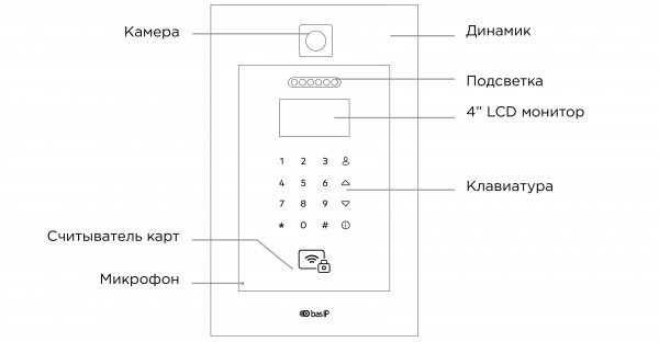Ethernet, RS-485, Wiegand 26 - 64, SIP P2P, русский, англ., графический