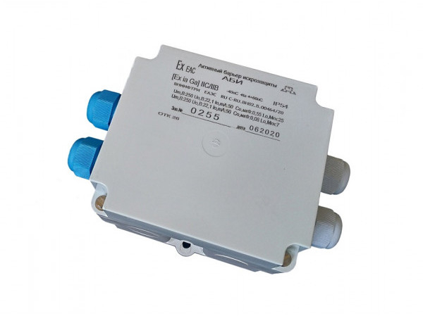 АБИ (2 канала) - активный барьер искрозащиты с кабельными вводами (ExiaGaIIВ/IIС) в ударопрочном пластиковом корпусе, степенью защиты (IP54) предназначен для обеспечения искробезопасности 2-ух шлейфов пожарной (ПС) или охранной (ОС) сигнализации, с включенными в него пожарными или охранными извещателями, датчиками с нормально замкнутыми (НЗ) или разомкнутыми контактами (НО), а также извещателями, питаемыми по шлейфу сигнализации с уровнем искрозащиты «ia» для взрывозащищенного электрооборудования группы II, подгрупп IIC/IIB по ГОСТ 31610.11-2014 (IEC 60079-11:2011).