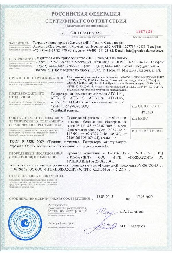 Генератор огнетушащего аэрозоля