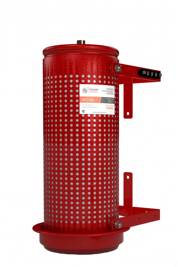 АГС-6/2 - генератор огнетушащего аэрозоля предназначен для генерирования газоаэрозольной смеси, необходимая объемная концентрация которой останавливает процесс пламенного горения защищаемого объёма - 52 м3 очагов возгораний и пожаров классов А (твердых горючих веществ), В (жидких горючих веществ), Е (электроустановок, находящихся под напряжением до 1000 В).