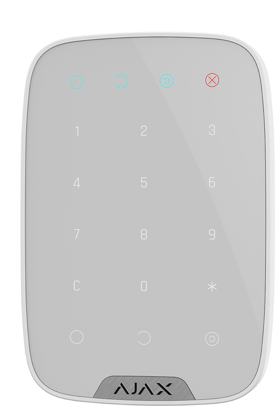 Ajax KeyPad - беспроводная сенсорная клавиатура предназначена для управления системой безопасности Ajax. Режим охраны включается по нажатию одной кнопки или при вводе цифрового кода. На случай угрозы предусмотрена функция снятия с охраны под принуждением.