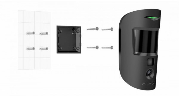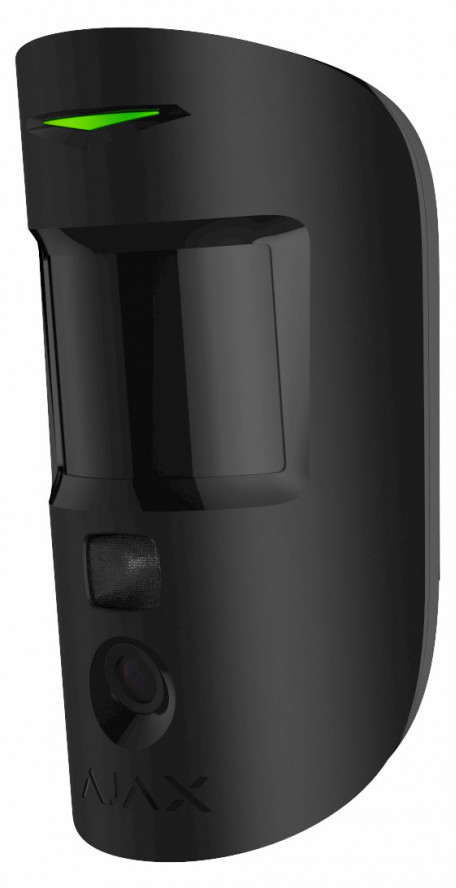 Ajax MotionCam (black) - извещатель чёрного цвета охранный оптико-электронный радиоканальный (868 МГц) с встроенной фотокамерой, дальностью зоны обнаружения - 12м, углом обзора - 88,50, наличием функции - иммунитет к животным до 20 кг и ростом до 50 см, благодаря алгоритму SmartDetect.