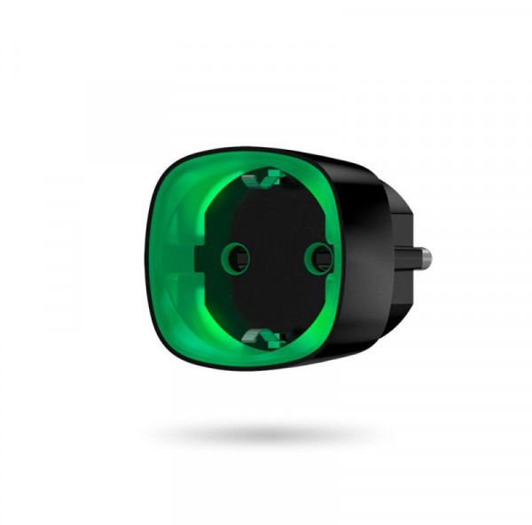 Ajax Socket (black) - радиоуправляемая (868 МГц) умная электророзетка чёрного цвета с вилкой европейского типа (Schuko type F), управляющая питанием приборов и рассчитана на нагрузку до 2,5 кВт.